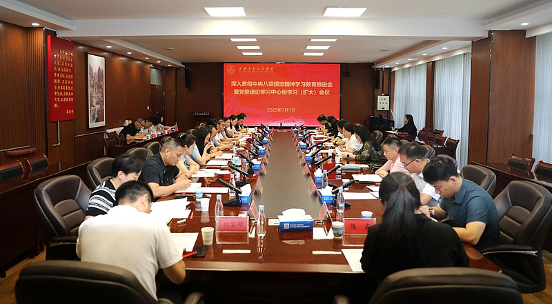 7月1日,深入贯彻中央八项规定精神学习教育推进会暨党委理论学习中心组学习(扩大)会议在校务楼第一会议室举行。校级党员领导、党委委员、纪委委员、党委各职能部门负责人、工会主席、团委书记、各二级党组织负责人参会。党委书记李萍主持会议。