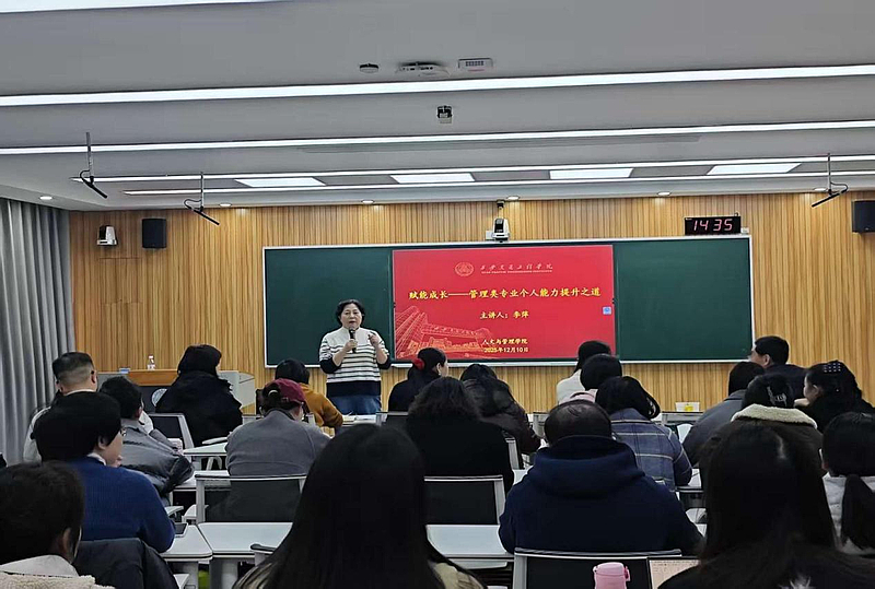 为助力管理类专业教师破解成长瓶颈,夯实教学科研根基,提升专业发展核心竞争力,12月10日,人文与管理学院在7-206智慧教室举办“赋能成长—管理类专业教师个人能力提升之道”专题讲座。本次讲座由经济学博士,二级教授、博士生导师,陕西省政府督导专员、兼任中国统计学会常务理事、中国统计教育学会副会长、陕西省统计学会副会长、陕西省数理类专业教指委委员、国家社科基金项目评审专家、陕西省数字政府统计决策咨询首席专家、校党委书记李萍教授主讲。电子商务、财务管理、物流管理专业全体教师齐聚现场,共享学术盛宴。