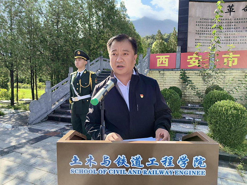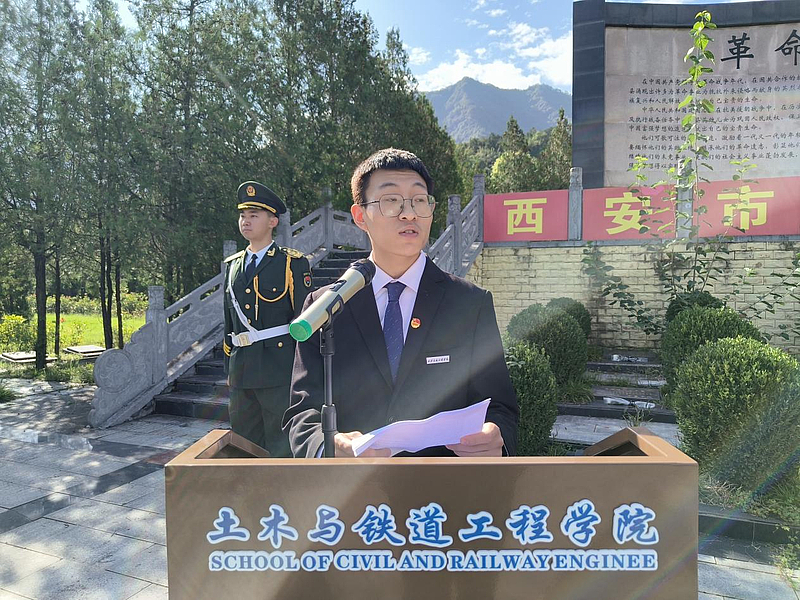 在中华人民共和国成立76周年前夕,在全国第十二个“烈士纪念日”到来之际,为深切缅怀革命先烈的丰功伟绩,弘扬爱国主义精神,激励广大师生党员不忘初心、牢记使命,9月30日上午,土木与铁道工程学院党委组织师生党员、学生代表,怀着无比崇敬的心情,前往鄠邑区烈士陵园,庄严举行了“致敬英雄忆往昔 喜迎国庆启新程”烈士纪念日主题党日活动。