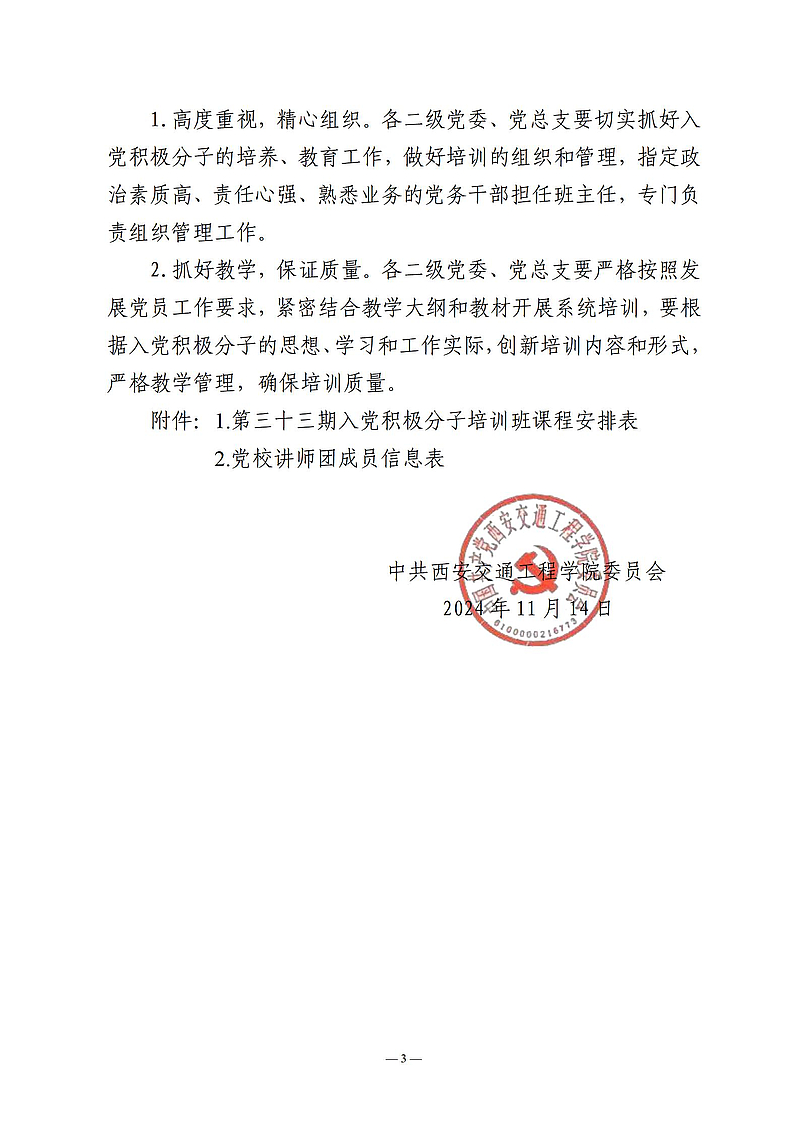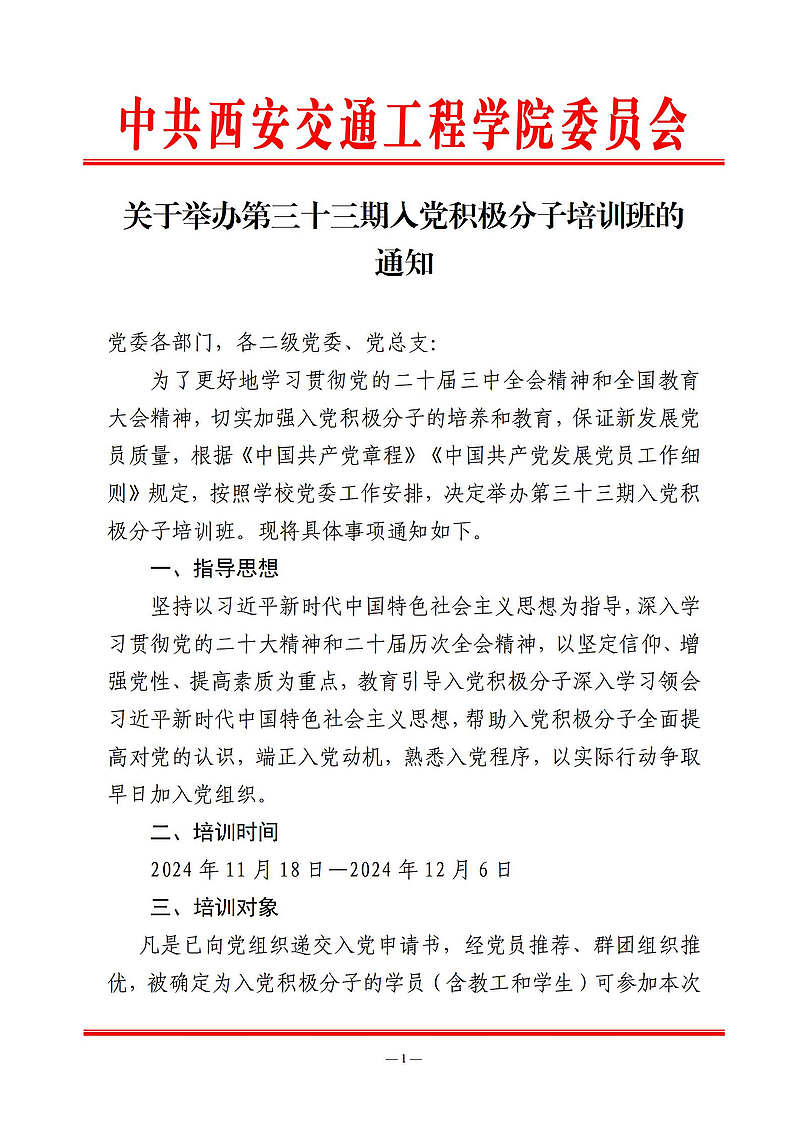 关于举办第三十三期入党积极分子培训班的